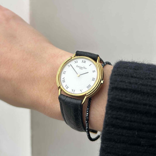 Christian Dior Watch: Vintage Ladies 80s Gold with Roman White Dial