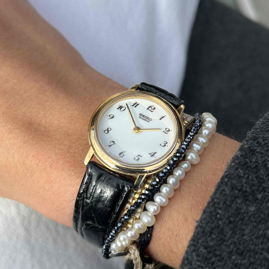 Seiko Vintage Ronde: Ladies Watch 90s Gold White Arabic Dial