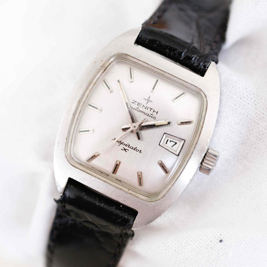 Zenith Respirator Watch: Vintage Ladies 70s Elegant Silver Rectangular Classic Style