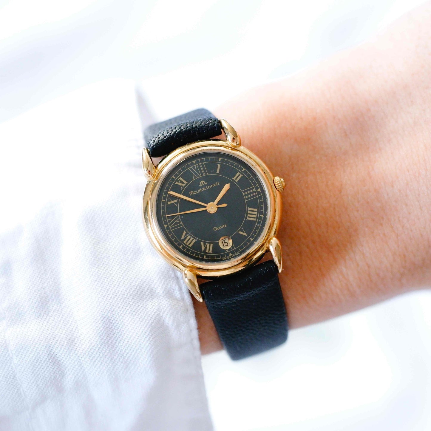 Maurice Lacroix Watch Vintage Ladies 90s Golden Black with Roman Numerals